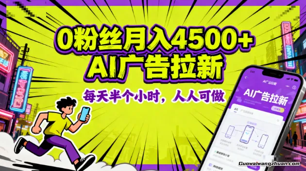 0粉丝月入4500+,2025AI广告拉新,每天半个小时,人人可做。
