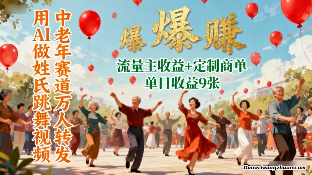 蓝海赛道,用AI做姓氏跳舞视频,中老年赛道万人转发,流量主收益+定制商单,单日收益9张。
