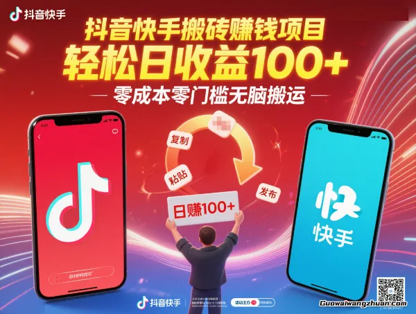 抖音快手搬砖赚钱项目,零成本零门槛无脑搬运,轻松日收益100+