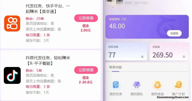 视频代发类平台,一个视频2-20r不等,一个号一天3-5条,不过奈何速度快,几分钟一条吧,每天忙不过10分钟搞定,早餐的煎饼果子里多加3个鸡蛋了属于是,长期稳定平台,运营很久了,需要的可以试试。