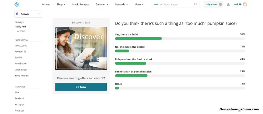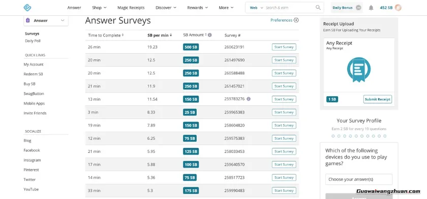 在该网站上赚钱最流行的方式是通过参与Swagbucks的调查。