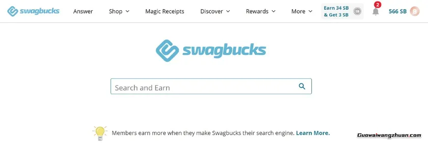 使用Swagbucks被动赚钱的一种方式是使用他们的搜索功能。你可以直接从你的Swagbucks账户、直接访问网站或将其设为主页来使用由雅虎 (Yahoo) 提供支持的搜索引擎。