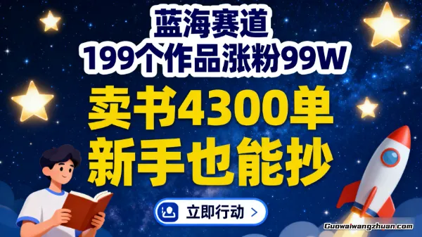 蓝海赛道,199个作品涨粉99W,卖书4300单,新手也能抄。