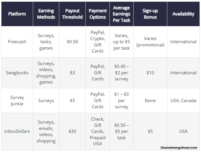 Freecash在一个竞争激烈的领域中运营,有几个成熟的平台提供类似的机会,通过微任务、调查问卷和游戏赚钱。