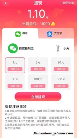 2.建议涨到10000金豆再领取,然后就可以提现了。